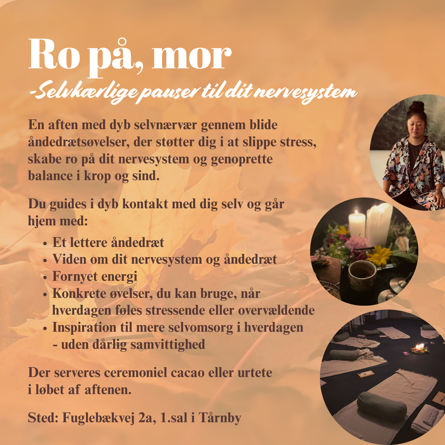 Kom og få ladet batterierne op til en aften med fokus på blide åndedrætsøvelser og indre ro sammen med andre mødre.