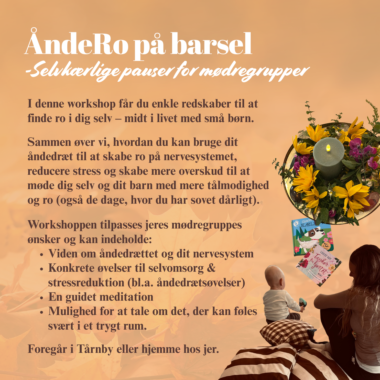 Vil du og din mødregruppe have en privat workshop med fokus på indre ro og selvomsorg i livet med små børn?